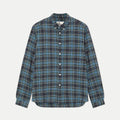 A classic-cut button-down shirt in midweight cotton with a soft hand and a subtle grid-like texture.