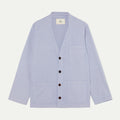 A V-Neck worker jacket with a comfy half-moon collar and a sharp overall cut.